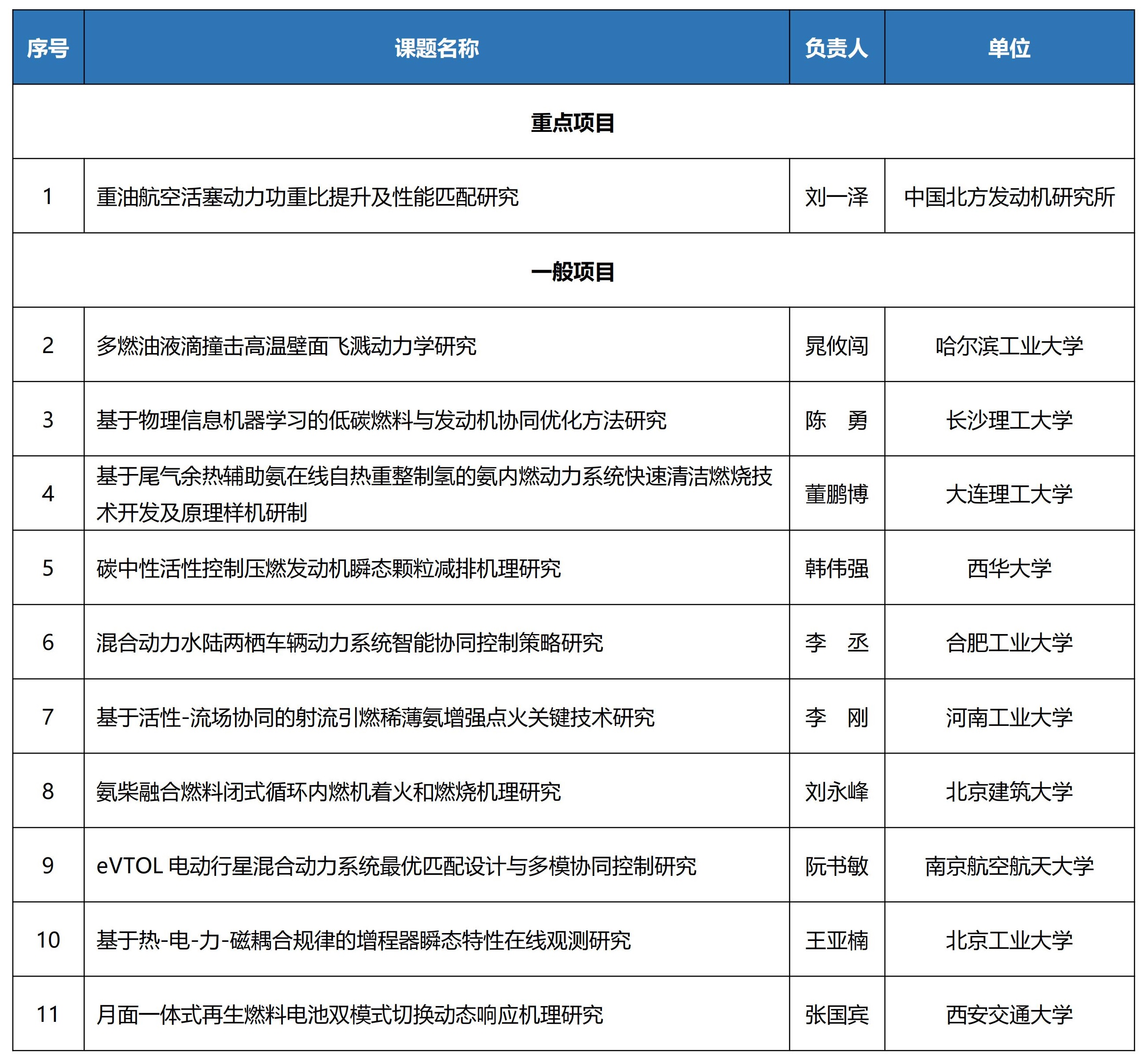经申报人申报、专家初评、学术委员会终评批准,2026年度先进内燃动力全国重点实验室评审通过开放课题11项。